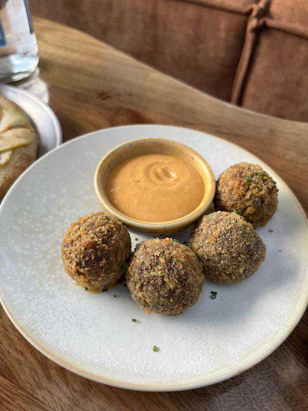 The French flatbread was such a fun dish! It has a Camembert filling and is topped with honey glazed apples, chilli flakes and walnuts. If you’re not a cheese lover - I would stay away from this because Camembert cheese is really an acquired taste. But if you are a cheese lover like me with high-functioning lactose intolerance then this dish is for you (take the pills beforehand 😮💨) The flatbread was warm and soft to the tear, so delicious, oozing that creamy Camembert with a nice apple crunch to top off the savoury with a touch of light sweetness. Really enjoyed this dish.