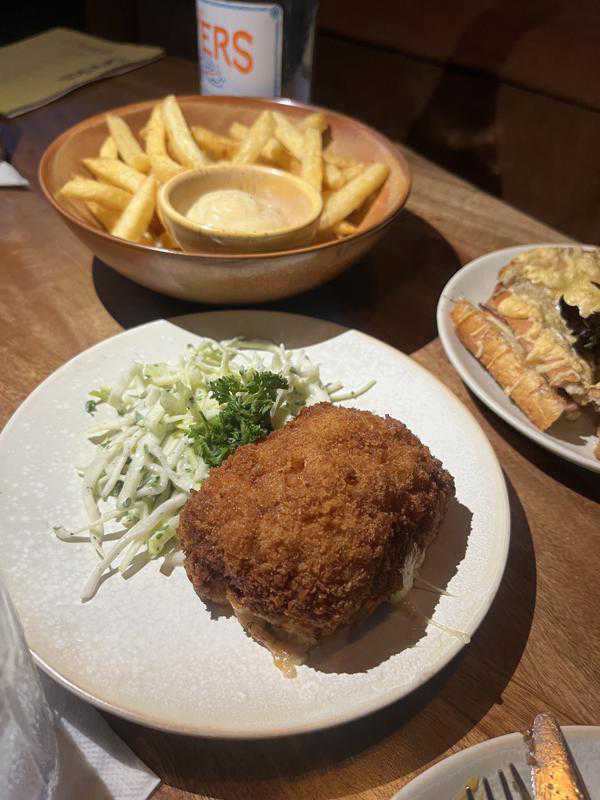And last but not least of our main small plates was the chicken cordon bleu which as you know also has cheese and a tasty remoulade sauce mixed into the ham & cheese filling. The dish comes with a side of coleslaw and we ordered one portion of fries as well. I don’t think I’ve had chicken cordon bleu before but if I have I must have not enjoyed it because this was also just an okay dish. I think the filling was too much for me. They also don’t have ketchup so you’d have to dip your fries in the various condiments they make in-house because they don’t make their own ketchup either.