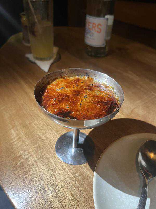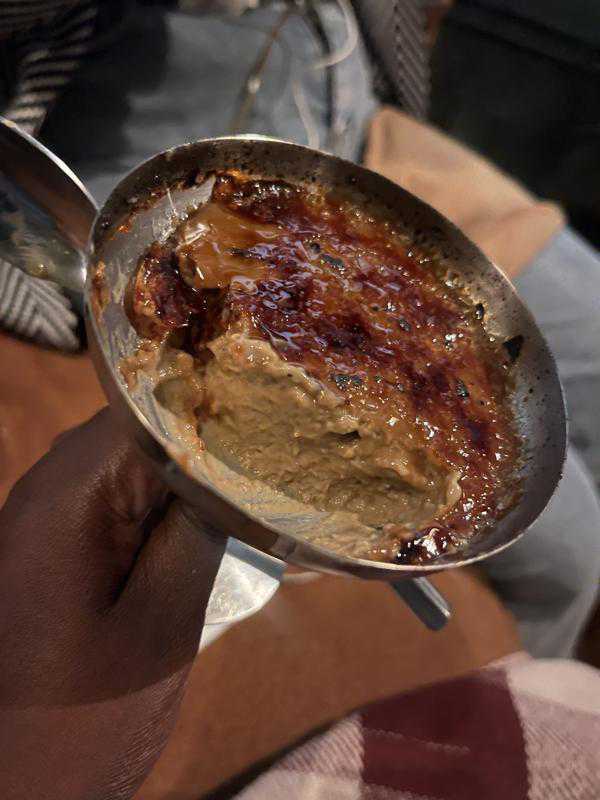 For dessert - the coffee creme brûlée was perfect! If I had to critique it I’d say the crust tasted slightly burnt, like more than usual which affected the taste of the crust very slightly but did not take away from the wonderful full bites that I had of that crème brûlée. I’m always ready for anything coffee - flavoured! It being presented in a cute metal martini glass made eating it even more delightful.