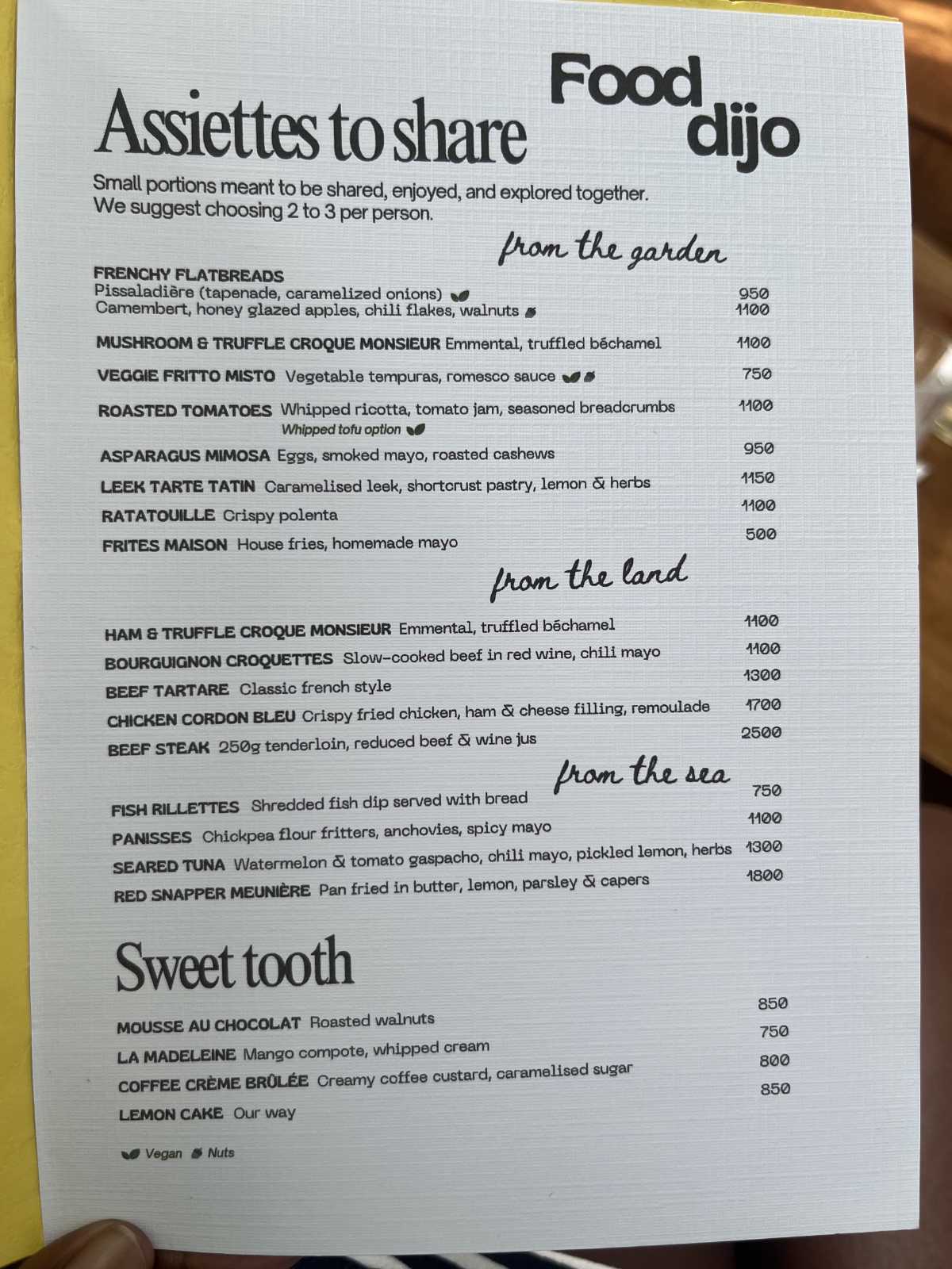 The menu is small but exciting. They focus on small plates to share amongst yourselves, tapas style. We tried a few items including: the Frenchy flatbread (KSH1100/), the bourguignon croquettes (KSH1100/), the ham & truffle croque monsieur (KSH1100/), the chicken cordon blue (KSH1700/) and the coffee crème brûlée (KSH800/) for dessert. For drinks we had the passion lemonade (KSH680/) and the bisou (KSH680/). Lemme talk about the drinks first - the passion lemonade is very refreshing if you’re more of a citrusy person while the bisou has a cranberry base so it’s more on the sweeter side. I enjoyed both but my friend preferred the passion lemonade.