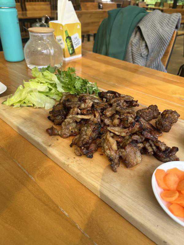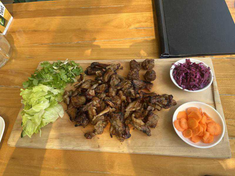 They pride themselves in making fresh authentic Vietnamese dishes using indigenous Asian vegetables and fresh herbs that they grow themselves in their farm at Marula lane. That day though they seemed to be out of a couple of things so we didn’t get to try a good variety of stuff. I really wanted some pho but they didn’t have it so we opted for some chicken wings (cahn ga ran, KSH600) and the bbq platter for 2 (KSH2950)