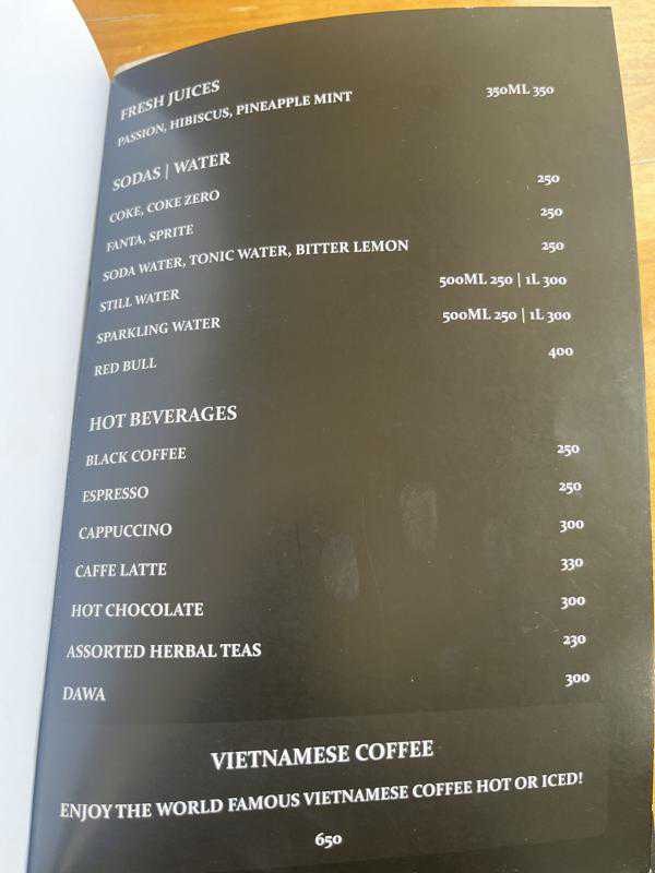 I also had to try the coffee because the Vietnamese have truly won the coffee war, their coffee is amazing no matter where you try it. A cup is KSH650 though so try it… but don’t overdo it. Our server showed us how to get a nice strong cup of phin drip coffee and as a coffee lover, I was very satisfied. That one cup had me wired for the rest of the day.