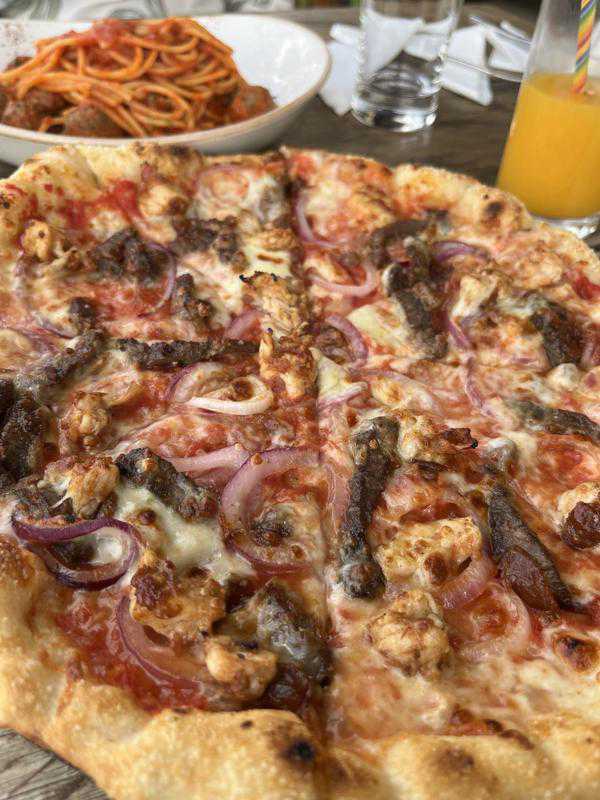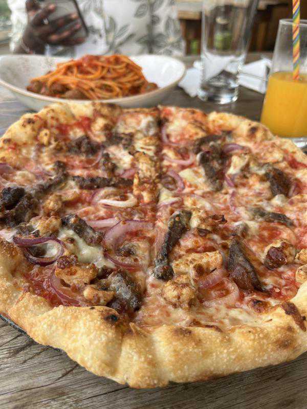 Now let’s talk about this Zanzibari pizza. It’s named that because of the tasty Zanzibari chutney they use as a base. And I think that’s what I love about it the most - it’s tangy but also fruity so it adds in a bit of sweetness to balance out the spice and flavour of the meats on it.