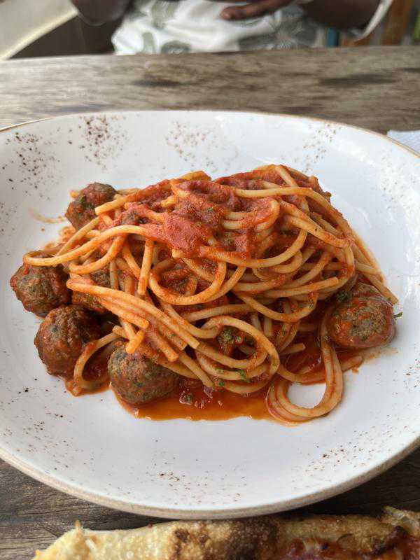 I came here for lunch with a friend and she decided to try their spaghetti & meatballs (KSH1500) and we split some garlic butter ciabatta with mozzarella as a starter (KSH550).