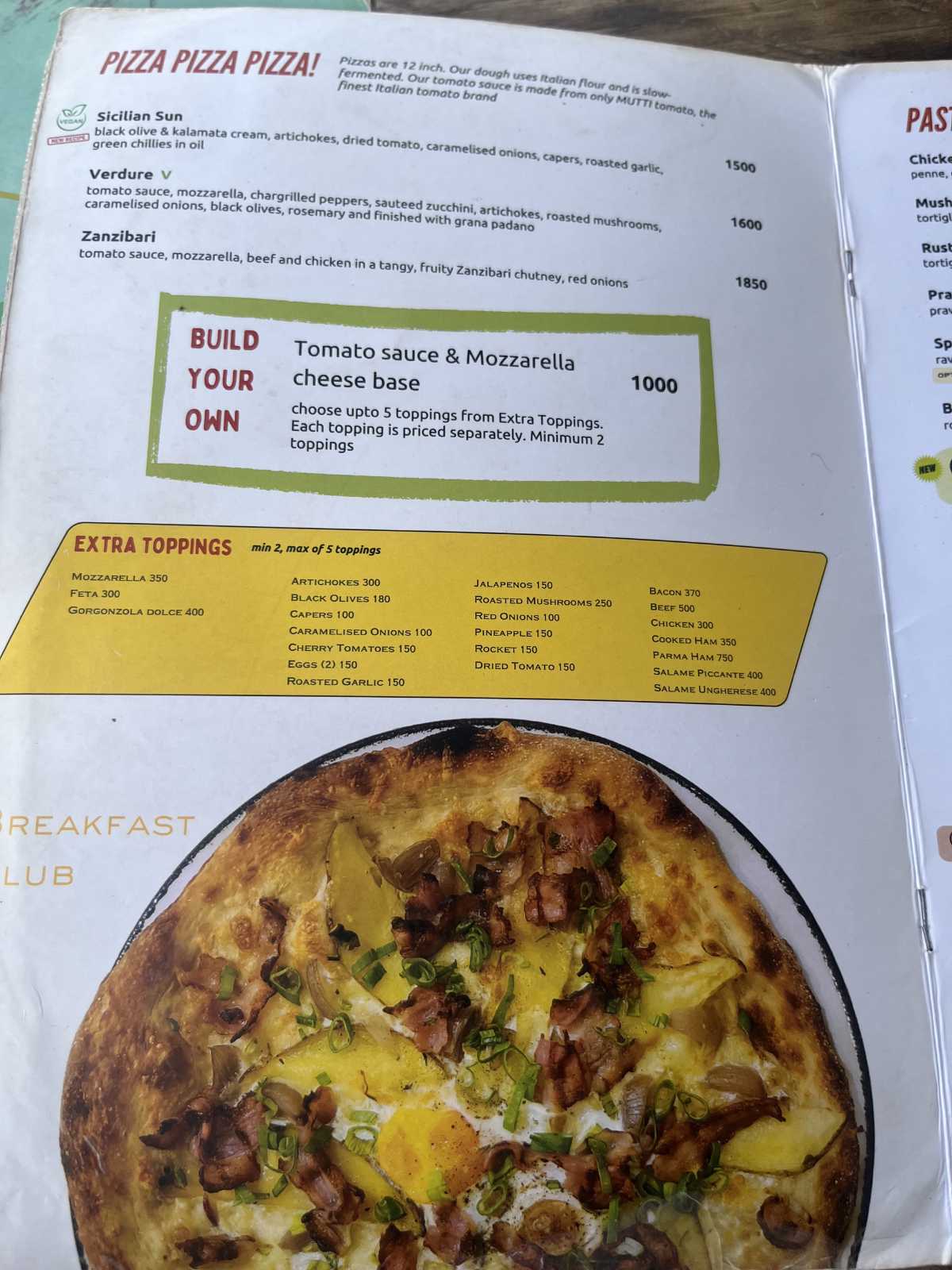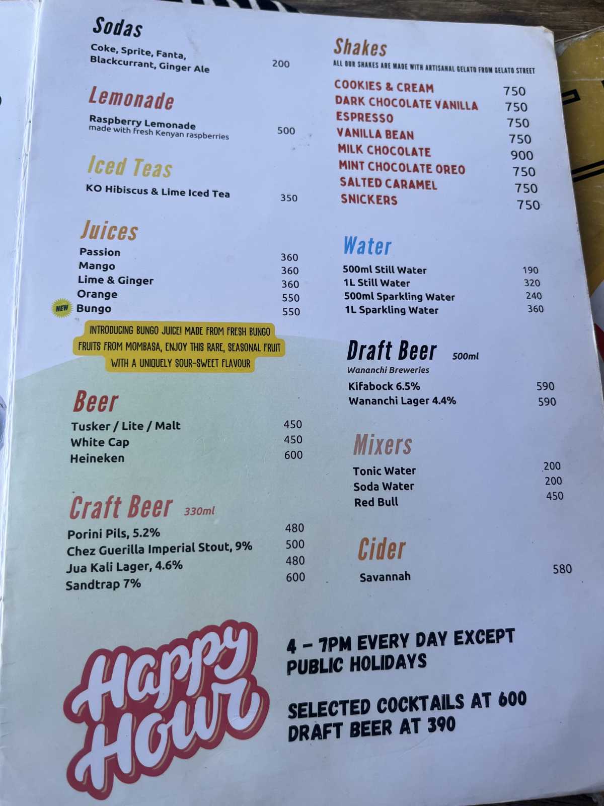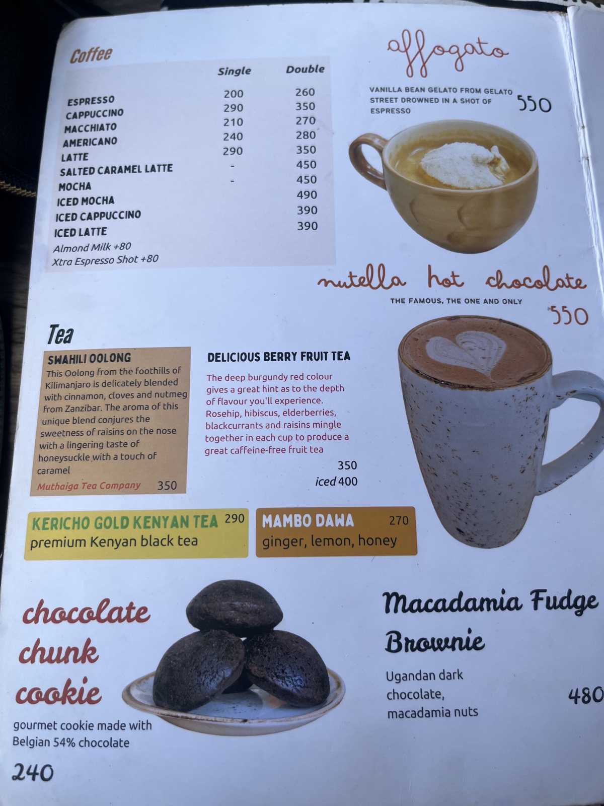The menu is very pizza focused but they also have a good variety of other Italian and continental dishes. I sometimes try the pasta here but usually you’ll always find me having my usual and my fave - the Zanzibari pizza (KSH1850).