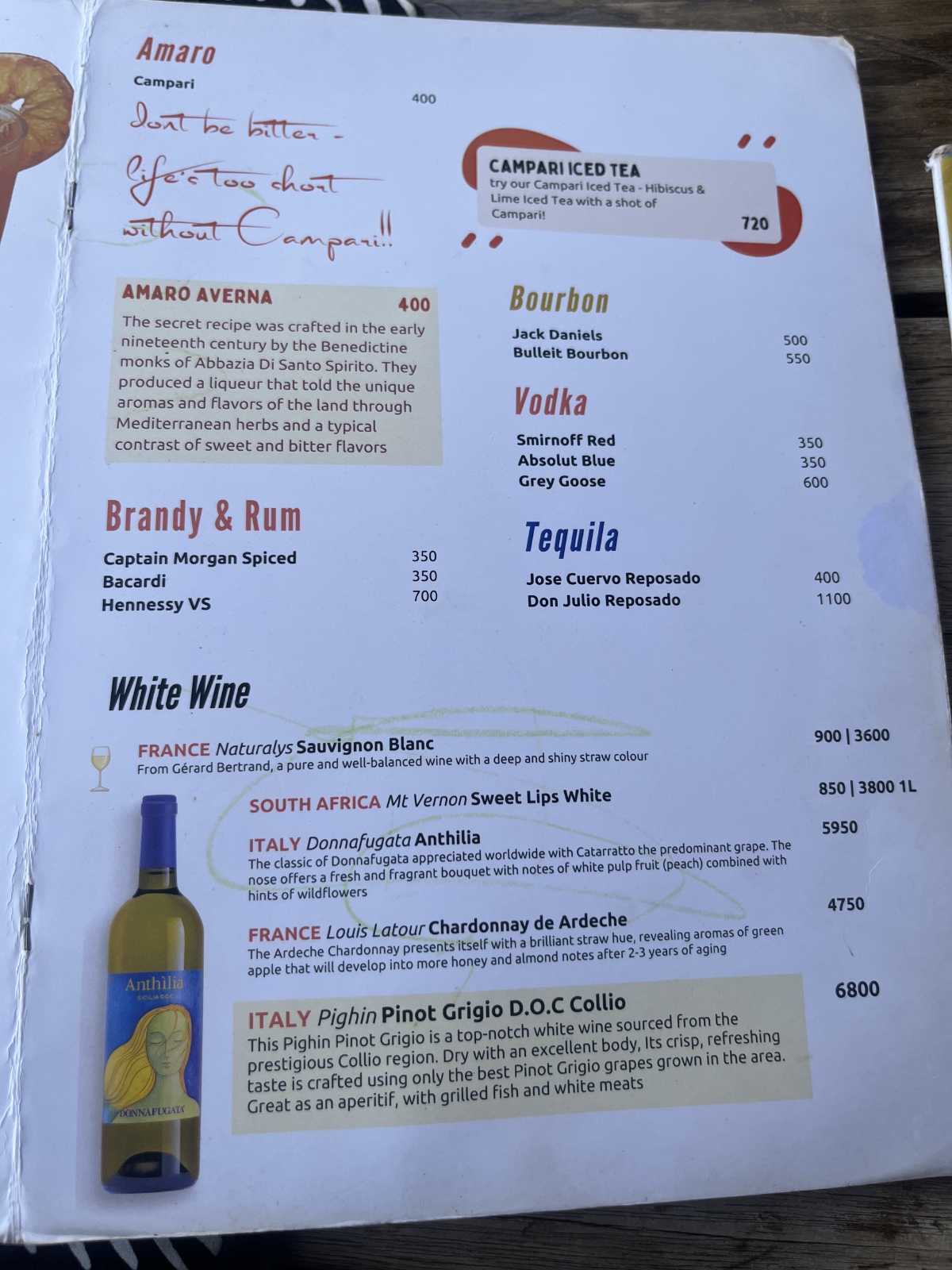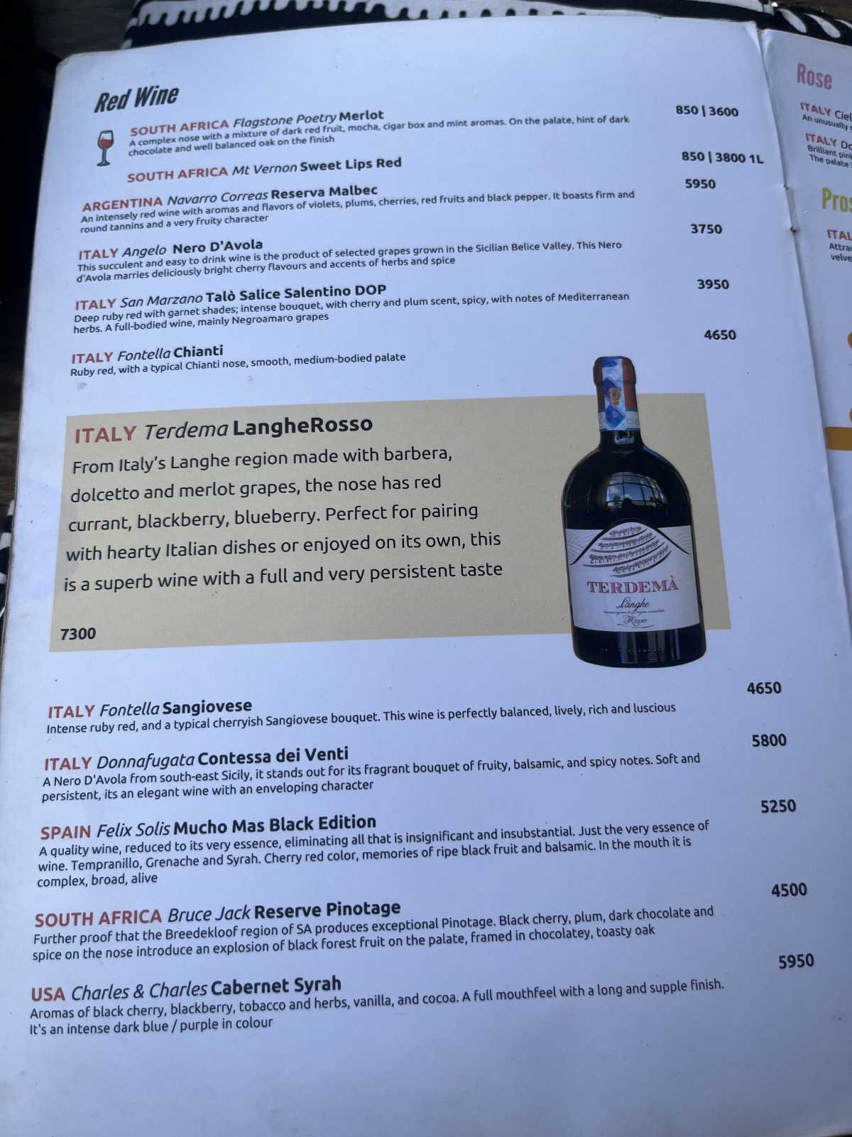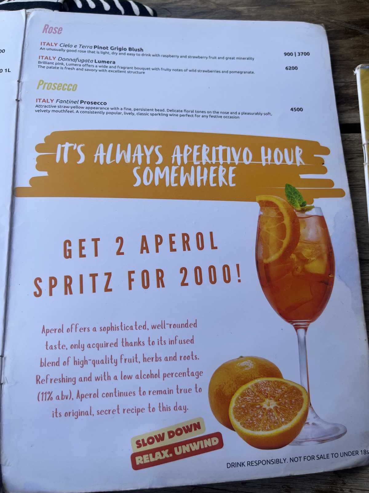 The menu is very pizza focused but they also have a good variety of other Italian and continental dishes. I sometimes try the pasta here but usually you’ll always find me having my usual and my fave - the Zanzibari pizza (KSH1850).